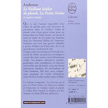 Que ce soit l’amour impossible d’un soldat de plomb pour une danseuse de porcelaine dans Le Vaillant Soldat de plomb, celui d’une petite sirène pour un prince dans La Petite Sirène, ou encore la mise en scène de la vanité des hommes dans Les Nouveaux Habits de l’empereur, Andersen sait avec une grande subtilité, à partir d’objets ou d’attitudes de la vie quotidienne, enchanter le réel. Chaque conte est ainsi pour l’écrivain l’occasion de relater un parcours initiatique à travers des récits courts, merveilleusement ciselés. Ses propres obsessions autobiographiques sont transfigurées en données universelles qui décrivent, sous une forme faussement anodine, les profondeurs de l’âme humaine. Dès lors, nous comprenons pourquoi les Contes d’Andersen restent le livre le plus traduit après la Bible.Ce volume comprend : La Princesse sur le pois, La Petite Sirène, Les Nouveaux Habits de l’empereur, Le Vaillant Soldat de plomb, Le Vilain Petit Canard, La Bergère et le Ramoneur, La Petite Fille aux allumettes.
